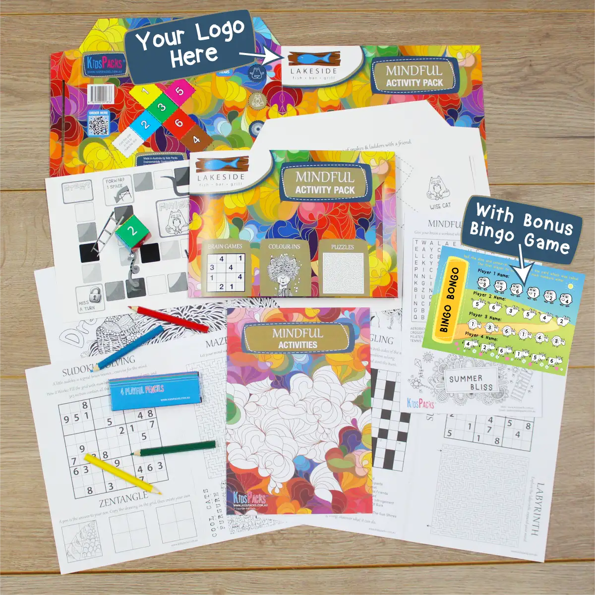 Logo Branded Premium Activity Packs Include